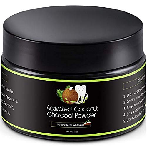 Activated Charcoal Natural Teeth Whitening Powder Kit by Lantique - Organic Coconut Charcoal Powder Removes Coffee Cigarette Stains, Works Well with Toothpaste