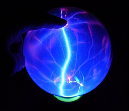 KRight® High-quality Glass Plasma Ball Sphere Lightning Light Lamp Party Magical Ball Electrostatic Falshing Ball (blue, 6Inch)