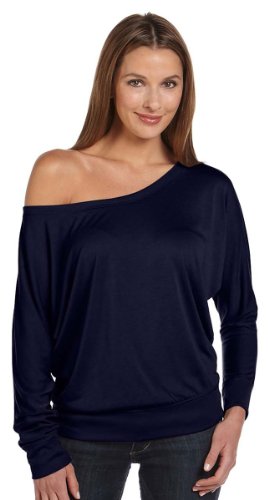Bella + Canvas Ladies Flowy Off Shoulder T-Shirt, XS, MIDNIGHT