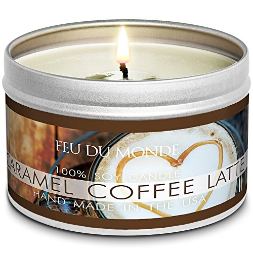 Feu Du Monde Premium Caramel Coffee Latte Natural Soy Wax Candle Travel Tin 8 Ounces