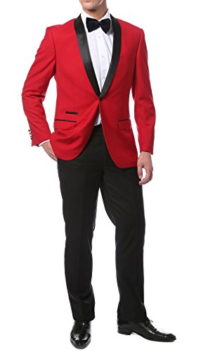 Ferrecci Men's Reno Slim Fit Shawl Lapel Collar 2 Piece Tuxedo Suit Set - Tux Blazer Jacket and Pants