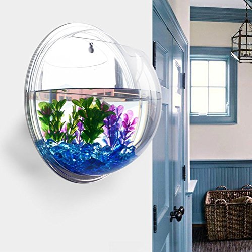 Homecube Wall Hanging Bubble Fish Tank Flowerpot Wall Mount Acrylic Fish Bowl Decoration with stones/plant(Mirror)