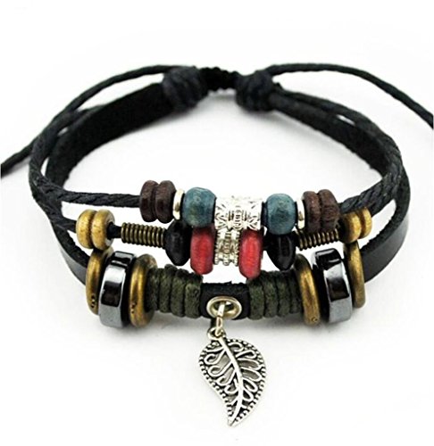 November's Chopin (TM Art Metal Leaf Pendant Adjustable Fashion Braided Wrap Bracelet