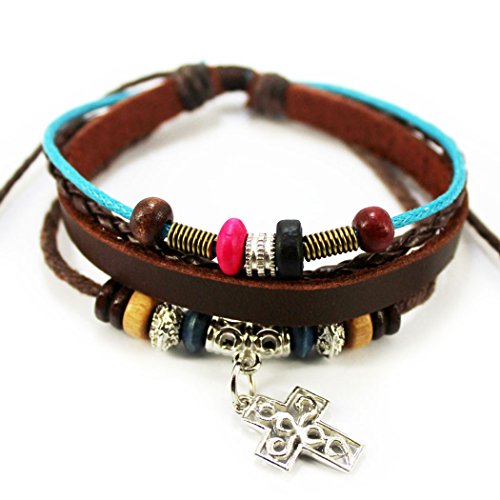 November's Chopin (TM Art Cross Pendant Colorful Wood Beads Adjustable Charm Wrap Bracelet
