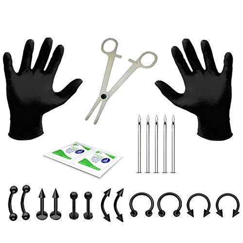 BodyJ4You 20PC Pro Piercing Kit BCR CBR Labret Tragus Nipple Nose Lip 16G Steel Jewelry