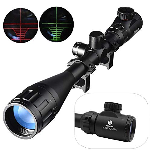 Beileshi 6-24X50mm AOEG Optics Hunting Rifle Scope Red/Green Illuminated Crosshair Gun Scope With Flip Up Scope Covers