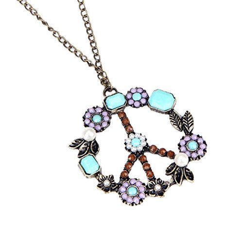LUNIWEI Bohemian Fashion Women Retro Pearl Peace Symbol Necklace Sweat.