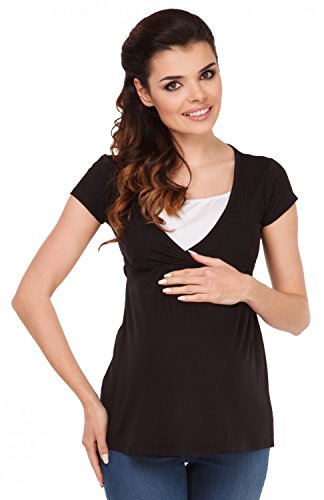 Zeta Ville - Women's Maternity Nursing Wrap Front T-shirt Top Shirt S-3XL - 373c (Black, US 6, S)