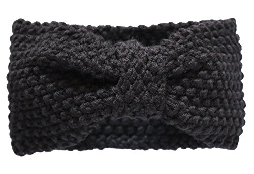 KMystic Crochet Bow Winter Headband Ear Warmer (16-Black)