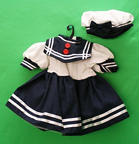Porcelain Doll Sailor Dress, Collar W. 6.5 cm, Shoulder W. 10 cm, Sleeve L. 10 cm, Cuffs W. 5 cm, Bust W. 11 cm, Waist 13 cm, Overall L. 24 cm.,May Fit 18-22" Doll