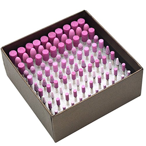 Okones 100Pcs 3mm(1/8'') Straight Shank Conical Cylinder Shaped Head Mounted Abrasive Rotary Burr Set Taper Points Grinding Head Fit Dremel Engraving Cutting Buffing Burrs Grinding Stone Set