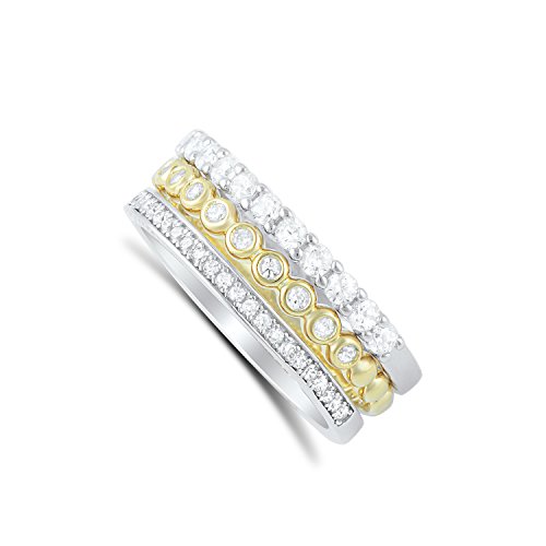 Two Tone Sterling Silver Cz Stacked Ring (Size 4-10)