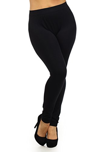ICONOFLASH Women's Plus Size Basic Solid Color Nylon Leggings (Black, One Size Plus)