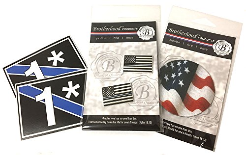 Brotherhood Thin Blue Line American Flag Lapel Pin Package of Two and One Flag Decal