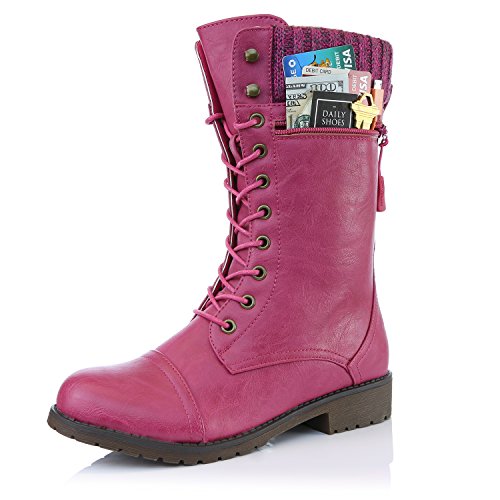 DailyShoes Women's Combat Style up Ankle Bootie Quilted Military Knit Credit Card Knife Money Wallet Pocket Boots