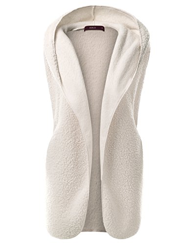 Doublju Hooded Open Front Faux Fur Vest (Plus size available) IVORY X-LARGE