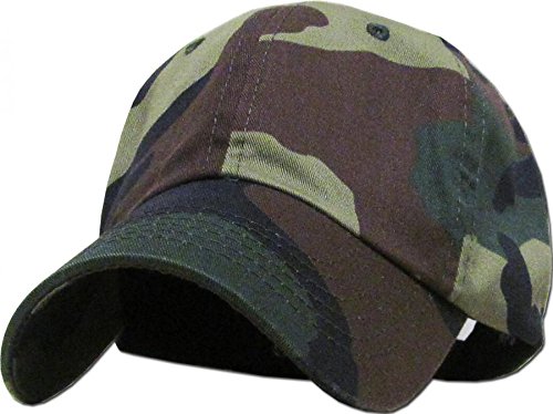 Woodland Camo-100% Cotton Adjustable Baseball Cap Hat Polo Style Washed Plain Solid Visor (US Seller)