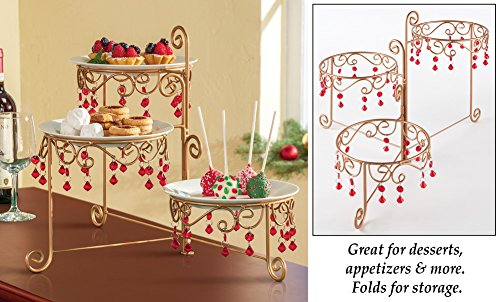 Beaded 3 Tier Goldtone Swivel Server - Red