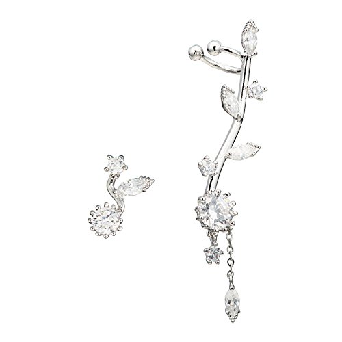 Chicinside CZ Crystal Sun Flower Sweep up Left Ear Cuffs Earrings Stud Set (silver-plated-base)
