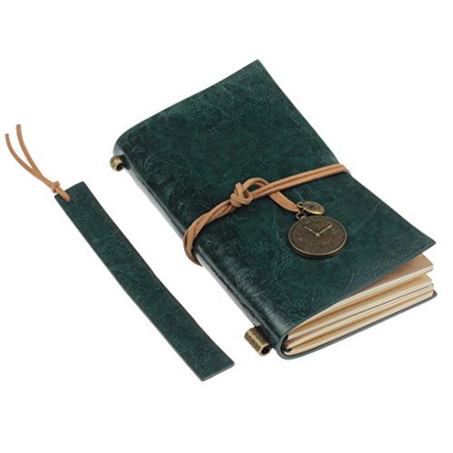Voberry Retro Classic Vintage Leather String Bound Blank Pages Journal Diary Notebook with Bookmark Label (Green)