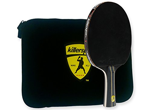 Killerspin Jet Black Ping Pong Racket Combo – Intermediate Table Tennis Bat| 5 Layer Wood Blade, Nitrx-4Z Rubbers, Flare Handle| Competition Ping Pong Racket| Protective Storage Case Sleeve