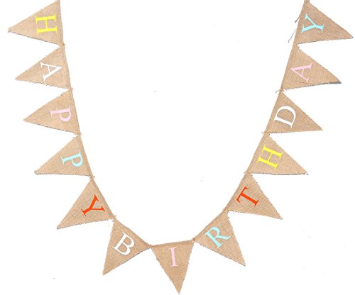 SL crafts Burlap Happy Birthday Banner Jute Hessian Burlap Banner Baby Shabby Chic Rustic Party Bunting Banner 82Inch