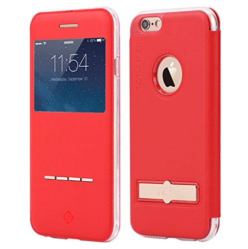 iPhone 6 Case, iPhone 6S Case, I3C View Window Folio Flip Leather Case Ultra Thin Slim Fit PU Case Cover Slide to Answer with Kickstand for 4.4 Inch Apple iPhone 6 6S Red