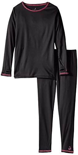 Cuddl Duds Girls' Big Essential Polyester Two-Piece Long Underwear Set, Black Solid, Medium