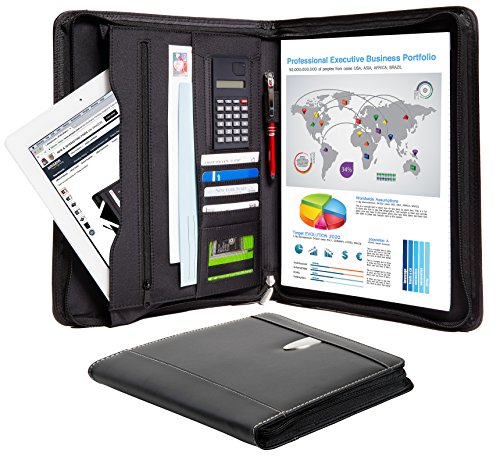 Business Portfolio Padfolio Binder – Professional Genuine Leather Padfolio - Zippered Executive Portfolio Organizer, A4 Replaceable Notepad, Calculator, iPad/Tablet Sleeve & Card Holder - eFolio