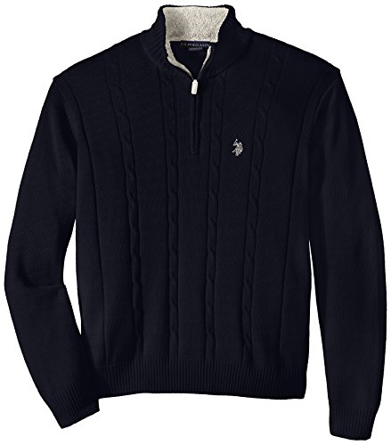 U.S. Polo Assn. Men's Big-Tall Cable-Knit Sweater with Sherpa Collar Lining, Navy, Big-Tall 3X