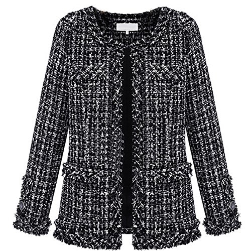 VOBAGA Women's Long Sleeve Black White Slim Woolen Coat L
