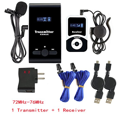 EXMAX ATG-100T 72-76MHz Wireless Tour Guide Monitoring Acoustic Audio Voice Transmission System Microphone Earphone Headset For Church Simultaneous Interpreting Teaching(1 Transmitter 1 Receiver)