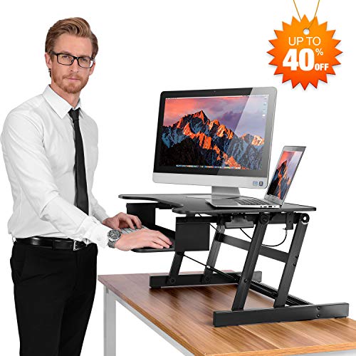 SMONET Desk Riser Height Adjustable Standing Desk Sit Stand Up Converter Laptop Stands Large Wide Desk Riser, 32" Tabletop Workstation Foldable fits Dual Monitor with Retractable Keyboard Tray - Black