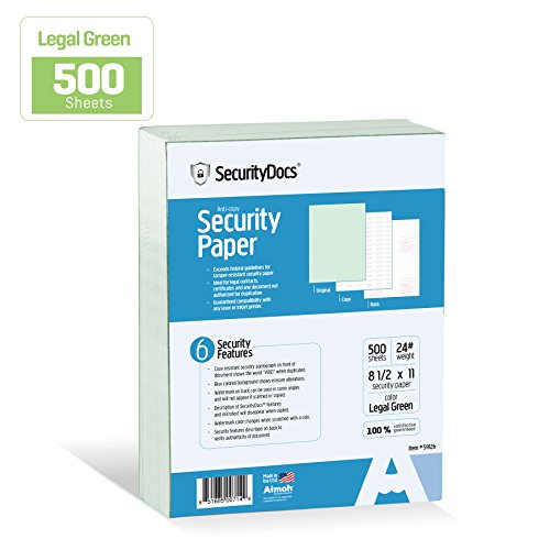 SecurityDocs Security Paper – 8.5 x 11 Inches, 500 Sheet Supply, Copy and Tamper Resistant, Pantograph, Inkjet and Laser Printer Compatible, Federal CMS Certified - Legal Green (59126)