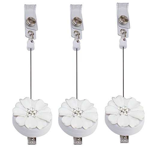 TASIRO Elegant Camellia Retractable Crystal Diamond I.D Card / Badge Reel with Belt Clip - 3 Pack