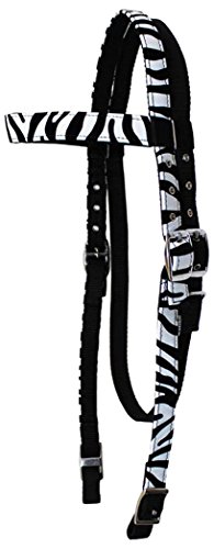 Tahoe Tack Zebra Print Overlay Nylon Western Browband Headstall with Matching Reins Full Size