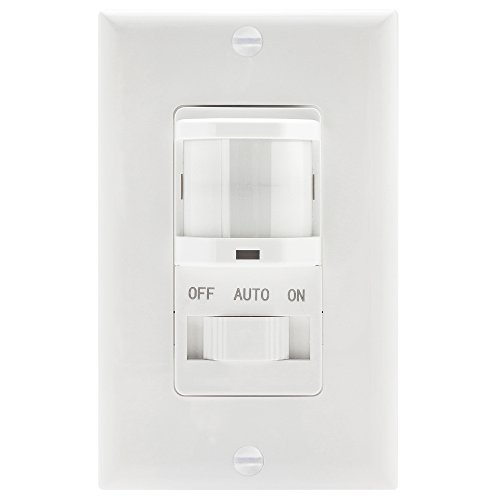 TOPGREENER TSOS5-White in Wall PIR Motion Sensor Light Switch, Occupancy Sensor Switch, On/Off Override, Single-Pole, Fluorescent 500VA/Motor 1/8Hp/Incandescent 500W, Neutral Wire Required, White