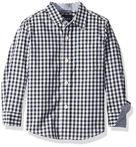Nautica Boys' Long Sleeve Mixed Gingham Shirt with Contrast Fabric