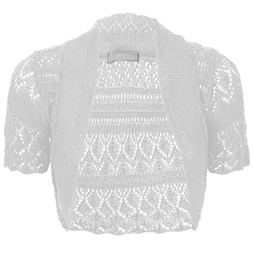 Thever Women Short Sleeve Knitted Crochet Shrug Bolero Cardigan Ladies Crop Top (L(14-16), White)