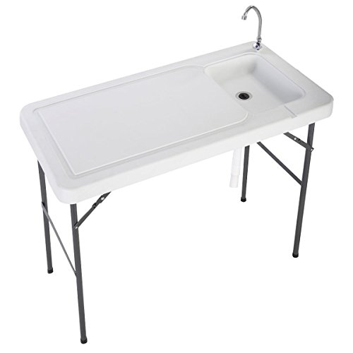 Goplus Portable Folding Table Fish Fillet Hunting Cleaning Cutting Camping Picnic Outdoor Gardening Table w/Sink Faucet (Stainless Steel Faucet)