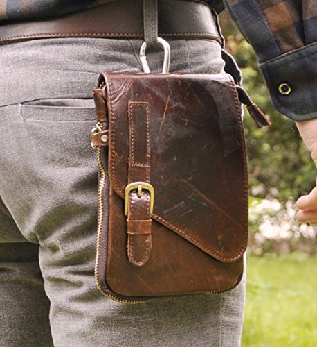 Le'aokuu Mens Genuine Leather Coffee Fanny Small Messenger Shoulder Satchel Waist Bag Pack