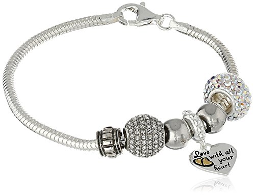 CHARMED BEADS Sterling Silver Love With All Your Heart Bead Charm Bracelet, 7.5"