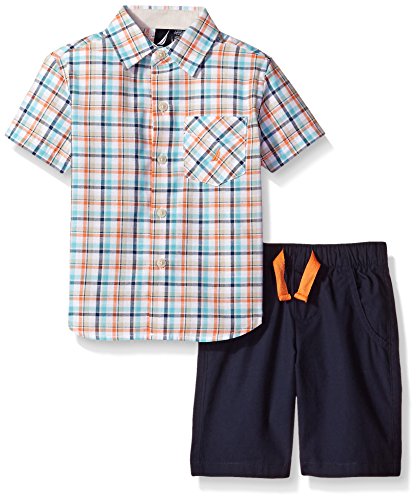 Nautica Boys' Two Piece Short Sleeve Plaid Shirt with Pull On Shorts