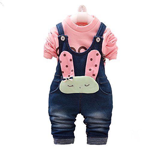 Kidscool Baby & Little Girls Frozen Soft Denim Fleece Overalls Sets Pink/White