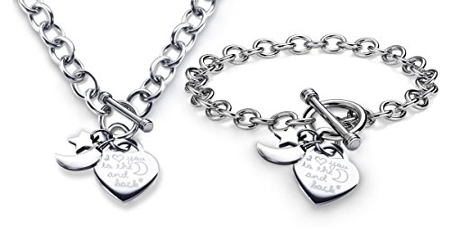 Charm Bracelet & Necklace Set I Love You to the Moon and Back Heart Toggle Stainless Steel