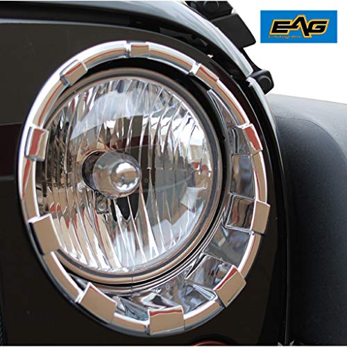 EAG Fit for 07-18 Jeep Wrangler JK Headlight Cover - Pair Triple Chrome Plated ABS (Silver)