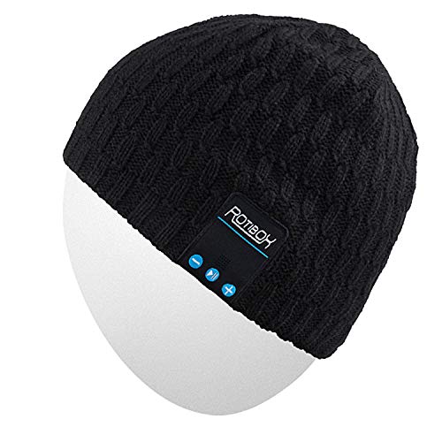 Qshell Bluetooth Beanie, Washable Winter Men Women Hat Running Cap with Bluetooth Stereo Headphones Mic Hands Free Rechargeable Battery for Outdoor Sports Snowboard Walking Running Skating- Black