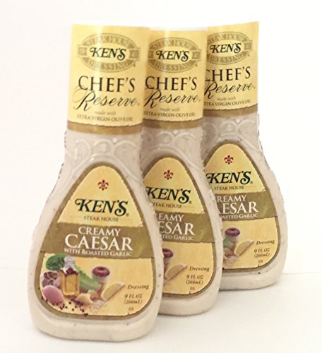 Ken's Steak House Chef's Reserve Creamy Caesar with Roasted Garlic Dressing (Pack of 3) 9 oz Bottles