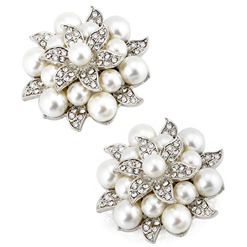 ElegantPark AE Fashion Rhinestones Ivory Pearls Wedding Party Sliver Shoe Clips 2 Pcs