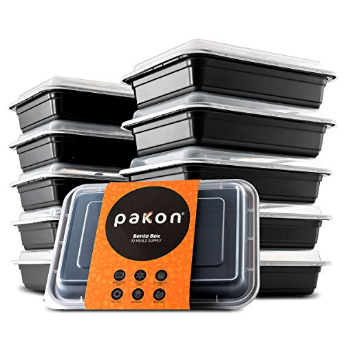 Pakkon Bento Box Food Storage Containers with Easy Tab Airtight Lid (10 Pack) Certified BPA-Free Reusable, Microwavable, Bento Box for Meal Prep Lunch Containers and Portion Control , 28 Oz